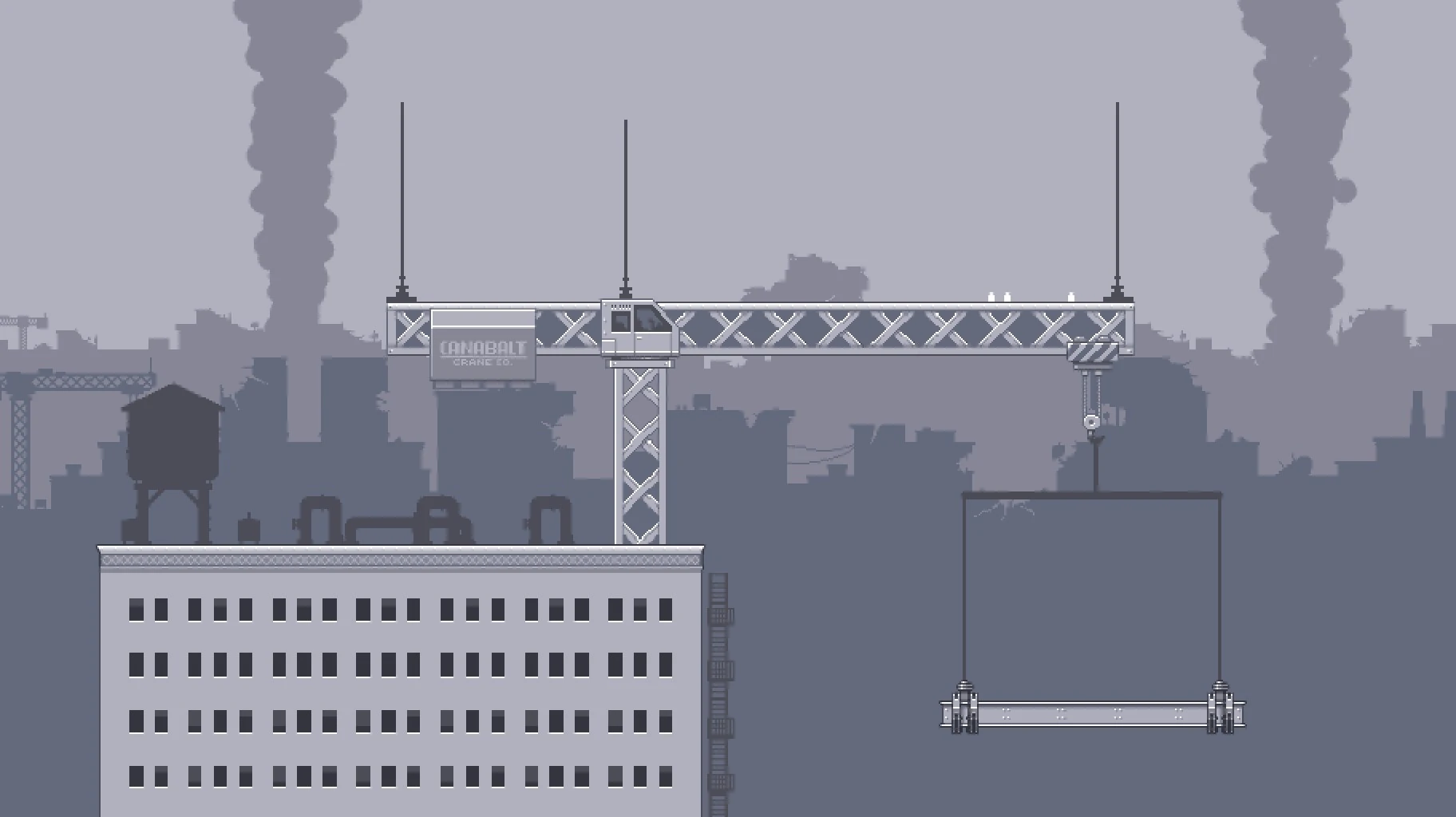 Canabalt Skyline takes place on top of a huge skyscraper in a monochrome city. Above the skyscraper is a long crane platform that extends across the middle length of the stage. The crane is holding a smaller suspended platform that dips to the right of the skyscraper. The stage's blast zones are very far out, making it great for free-for-all battles. | |